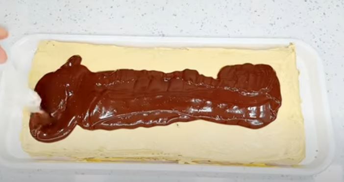 Αδειάζουμε την σοκολάτα πάνω στο γλυκό μας και αλείφουμε από πάνω