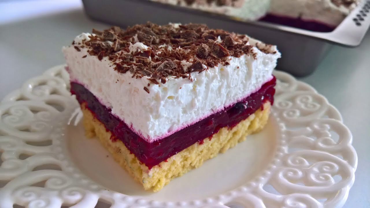 Χτυπάμε τη σαντιγί σύμφωνα με τις οδηγίες και μετά τη βάζουμε πάνω από το κέικ. Τρίβουμε από πάνω τη σοκολάτα