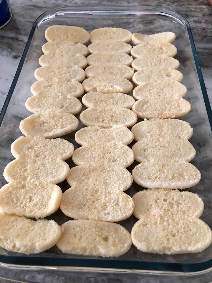 Αρχικά, ξεχωρίστε τα σαβαγιαρ και απλώστε από το ένα άκρο του Pyrex στο άλλο. Δεν χρειάζεται να βουτυρώστε επειδή δεν το ψήνετε αυτό το γλυκό