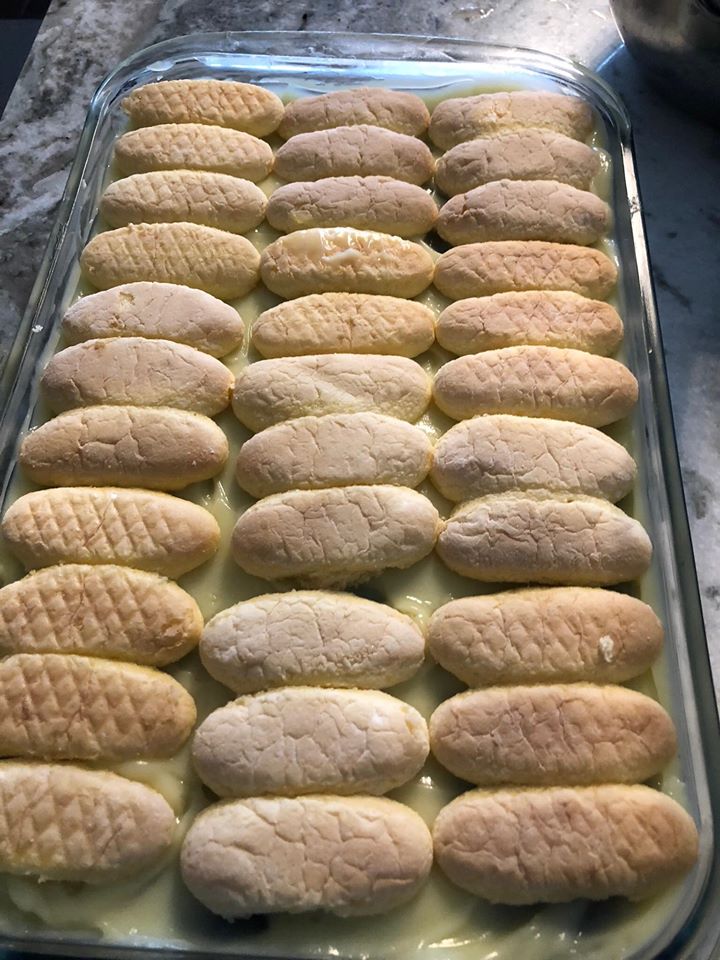 Προσθέστε την τελευταία σειρά από τα σαβαγιαρ πάνω από την πουτίγκα