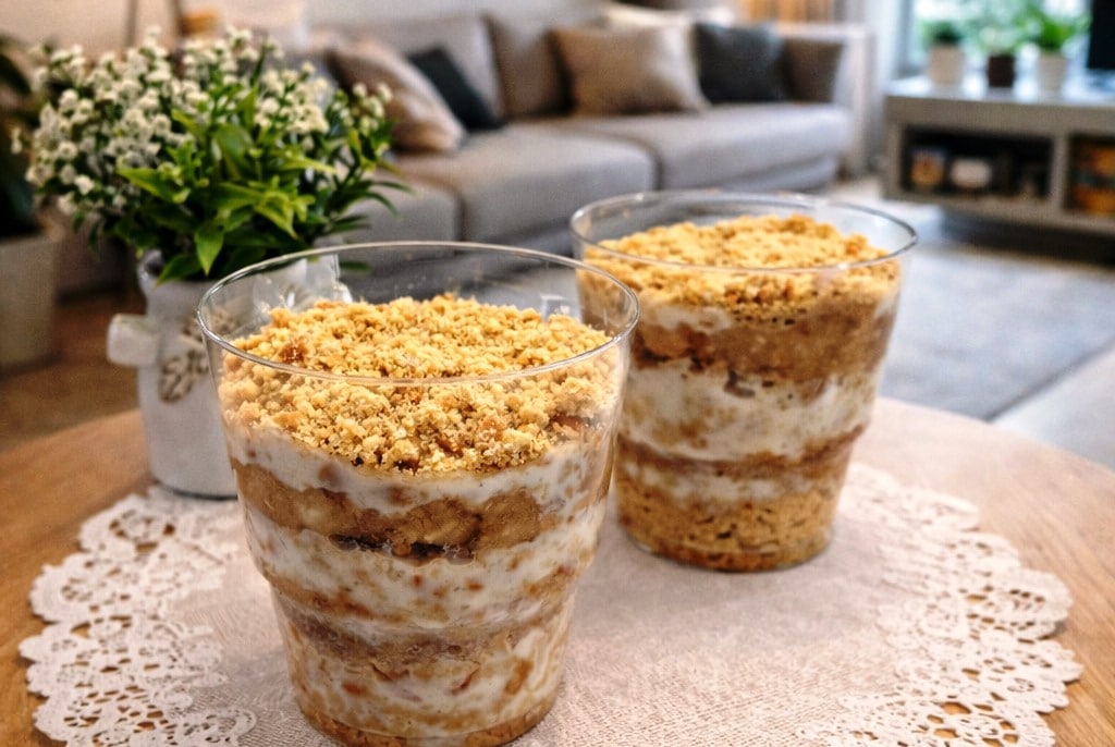 Όταν η λιγούρα για κάτι γλυκό χτυπάει την πόρτα αλλά ο χρόνος είναι περιορισμένος αυτό το γλυκό σε ποτήρι είναι η απάντηση που ψάχνετε. Με μόνο τέσσερα απλά υλικά δημιουργείτε ένα αποτέλεσμα αφράτο και δροσιστικό που συνδυάζει την τραγανή υφή από το μπισκότο με τη γλυκύτητα που προσφέρει η μπανάνα. Είναι μια συνταγή που θα ενθουσιάσει τα παιδιά αλλά και τους μεγάλους προσφέροντας μια πλούσια γεύση χωρίς κόπο. Είναι η ιδανική επιλογή για ένα γρήγορο κέρασμα ή για να κλείσετε όμορφα ένα οικογενειακό γεύμα.