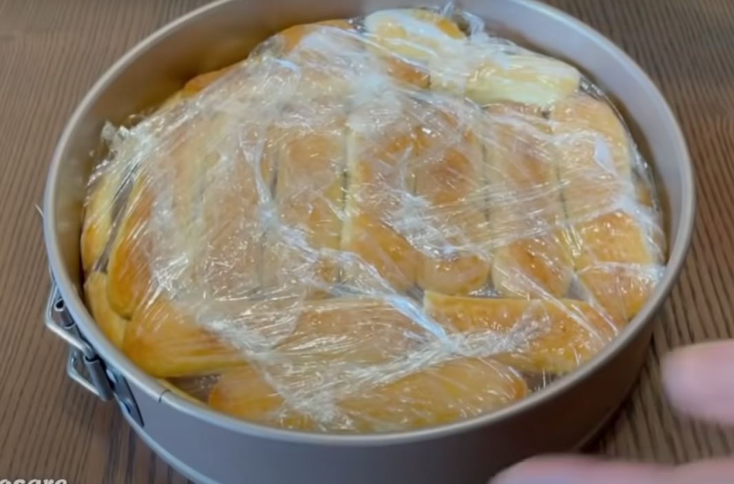 Σκεπάζουμε με την μεμβράνη και το βάζουμε στο ψυγείο όλη νύχτα.