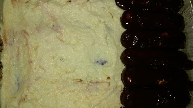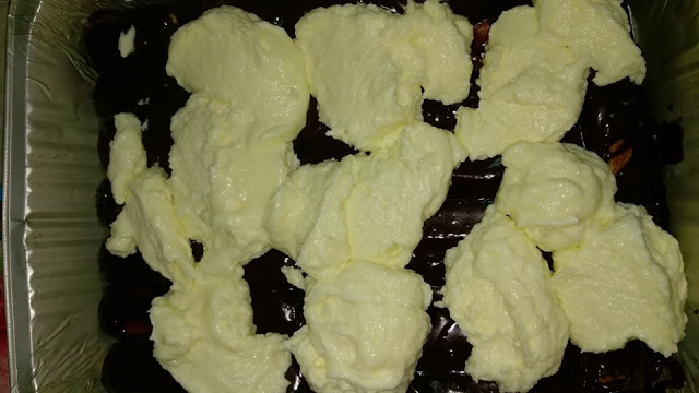 Από πάνω στρώνουμε την μόρφατ που έχουμε χτυπήσει με μισή κούπα ζάχαρη άχνη.