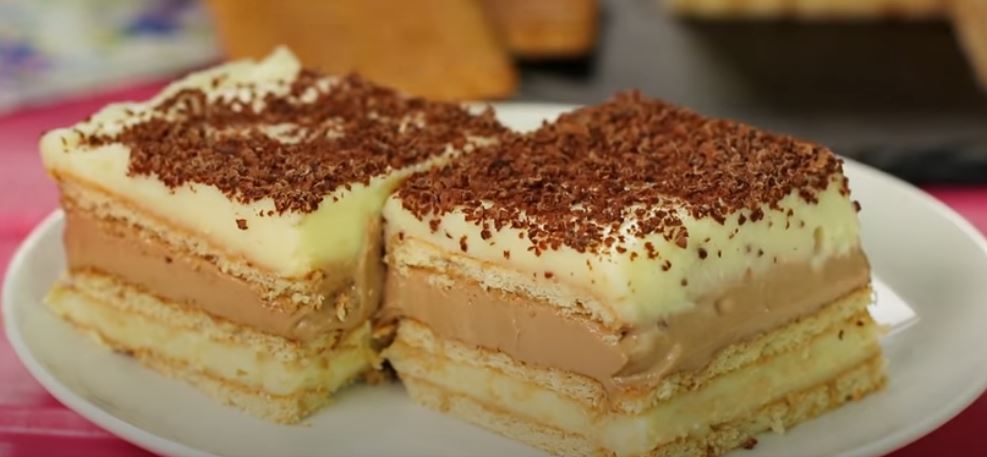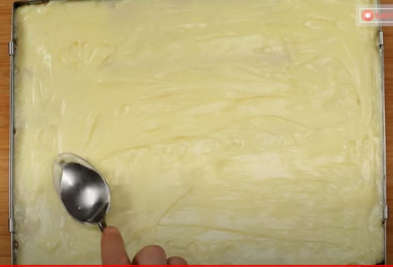 Στρώνουμε ένα τρίτο στρώμα με μπισκότα και απλώνουμε την υπόλοιπη κρεμα βανίλιας και βάζουμε στο ψυγείο για 8 ώρες