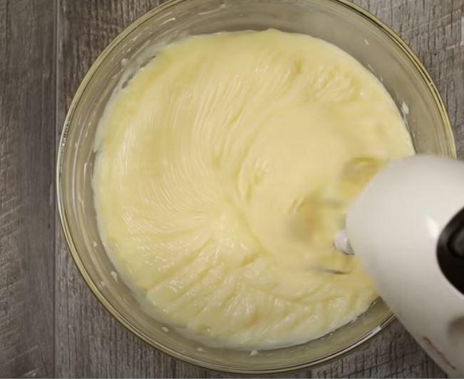 Βγάζουμε το μπόλ από την κατάψυξη και το χτυπάμε με ένα μίξερ χειρός να πάρετε μια μεταξένια κρέμα.