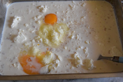 Ανακατεύουμε πολύ καλά όλα μαζί σκεπάζουμε και αφήνουμε να περιμένει το μείγμα για 10 λεπτά να φουσκώσει λίγο.