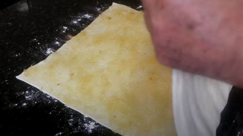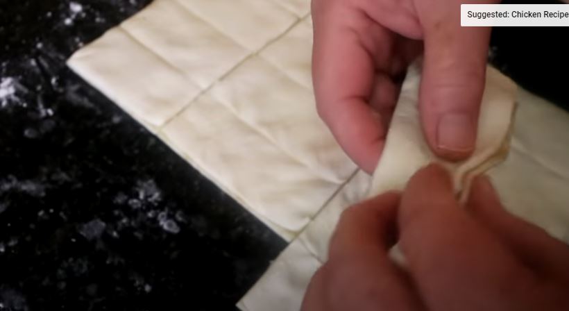 Με ένα μαχαίρι κόβουμε σε λωρίδες πλάτους περίπου 3 cm και μήκους μεταξύ 8 και 10.