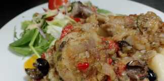 Τα ρολά κοτόπουλου τοποθετούνται σε ένα ταψί, ένα κομμάτι βούτυρο τοποθετείται σε κάθε ένα, χύνεται μπύρα, που ταιριάζει καλά με το κοτόπουλο, νερό, ντοματίνια.
