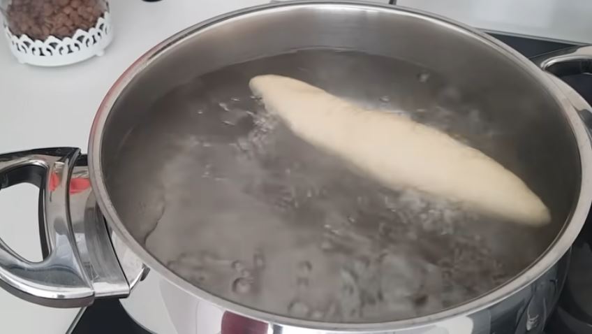 Ρίχνουμε δύο δύο τα ψωμάκια μας μέσα στο νερό και τα βράζουμε για 1 λεπτό.