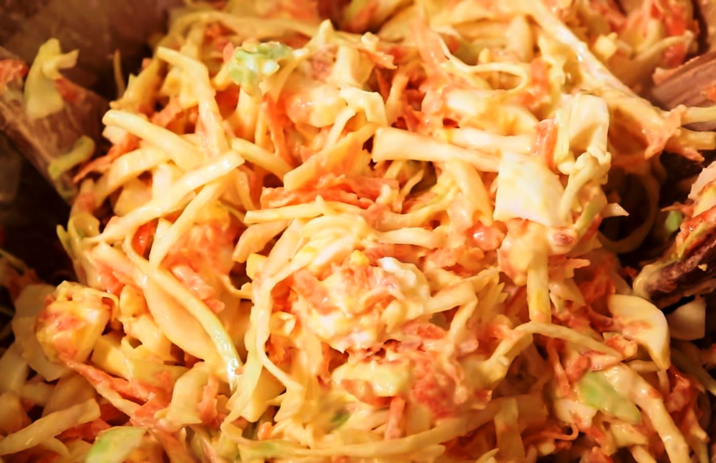 Τρίψτε τα καρότα και αναμίξετε τα με το λάχανο και αλάτι.
