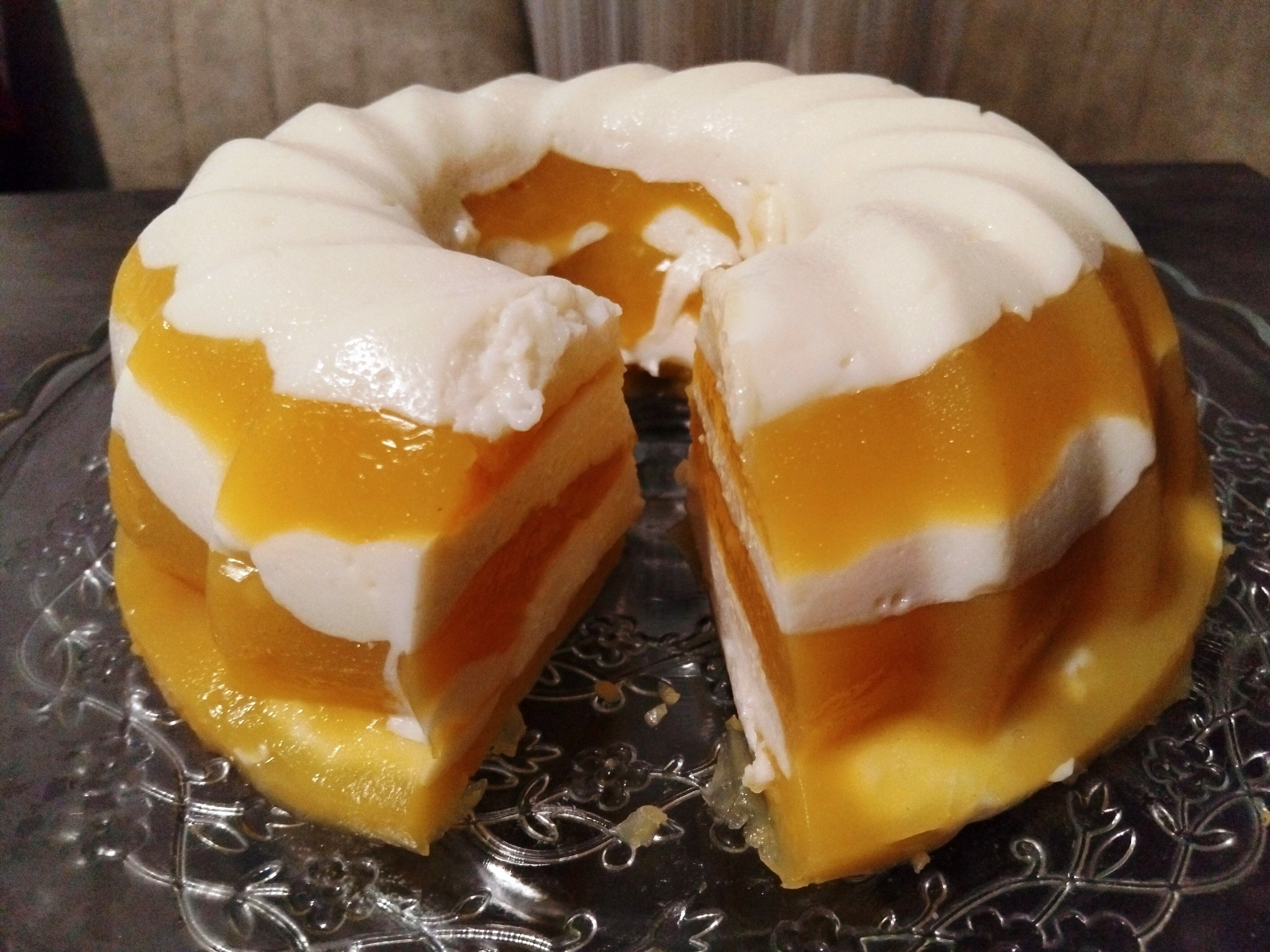 - Ανακατεύουμε σε μέτρια φωτιά μέχρι να πήξει η κρέμα να γίνει παχυρευστη. Βγάζουμε από την κρέμα βανίλια την μεμβράνη και Ανακατεύουμε πέρνουμε μια φόρμα του κέικ από σιλικόνη την βρεχουμε με κρύο νερό θα μας βοηθήσει να ξεφορμαρουμε πιο εύκολα το Γλυκό μας και βάζουμε το 1/3 από την λευκή κρέμα και από πάνω το ένα τρίτο από την φρουτενια κρέμα επαναλαμβάνουμε την διαδικασία άλλες δύο φορές