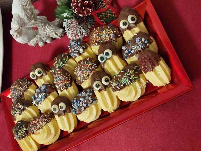 Ρίξτε η ζυμη που έχετε φτιαξει σε μια σακούλα ζαχαροπλαστικής με ένα μεγάλο ακροφύσιο αστέρι και φτιάξτε τα μπισκότα σε ένα ταψί καλυμμένο με λαδόκολλα,