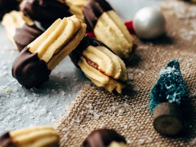 Γεμίστε τα μπισκότα με μαρμελάδα απλώνοντας στο κάτω μέρος ενός μπισκότου και τοποθετήστε ένα άλλο μπισκότο από πάνω (κοιτάξτε να είναι συμμετρικά κλεισμένα). Στη συνέχεια βουτίστε μέχρι την μέση στη λιωμένη σοκολάτα και αφήστε να στεγνώσει. Φυλάσσονται σε αεροστεγές δοχείο σε θερμοκρασία δωματίου μέχρι 1 εβδομάδα.