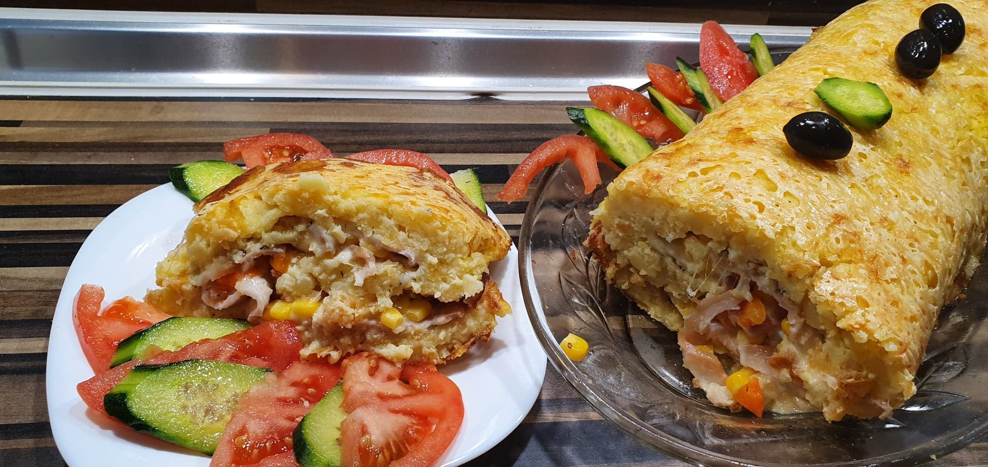 Αφού λοιπόν το γυρίσαμε αρχίζουμε και στρωνουμε με τα υλικά της Γέμισης