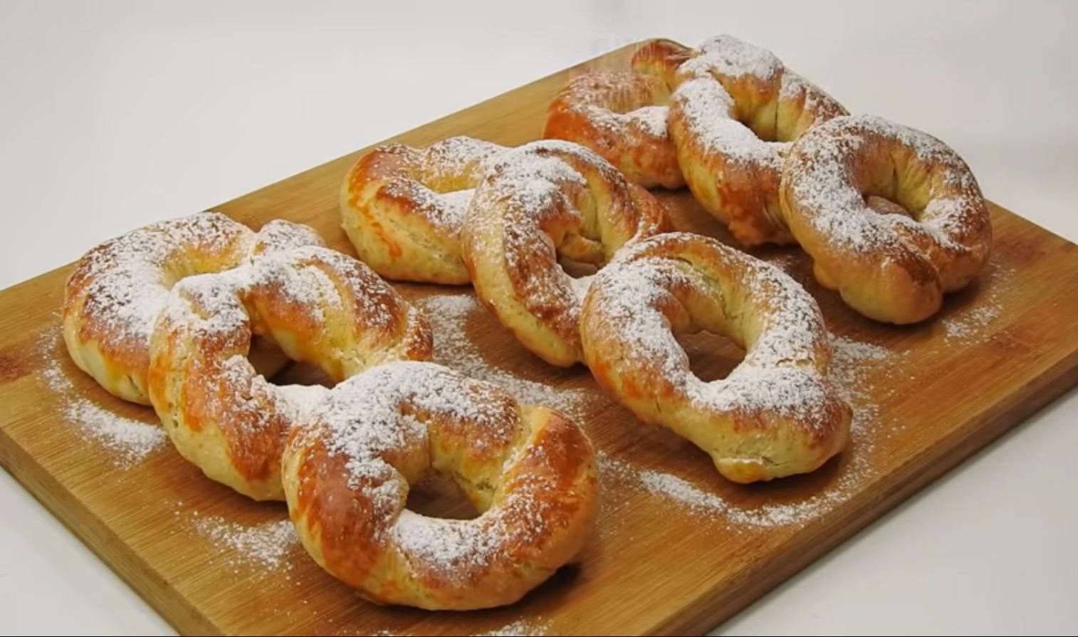 Τυλίγετε την ζύμη διαγώνια και κάνετε ένα κορδόνι το στρίβετε και λίγο και ενώνετε τις 2 άκρες να φταίξετε το κουλούρι.