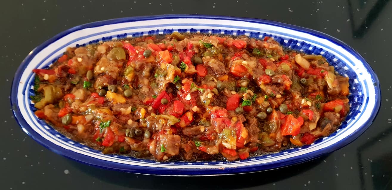 Μελιτζανοσαλάτα με ντοματα και πιπερια