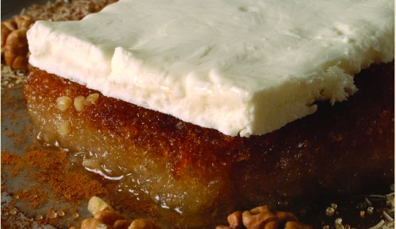 Περιχύνουμε λίγο-λίγο με το ζεστό σιρόπι το κρύο εκμέκ και αφήνουμε να το απορροφήσει. Σερβίρουμε το εκμέκ με παγωτό καϊμάκι.