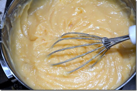 Σε μια κατσαρόλα βάζουμε όλα τα υλικά της κρέμας και τα βράζουμε σε μέτρια φωτιά ανακατεύοντας συνεχώς μέχρι να πήξει.