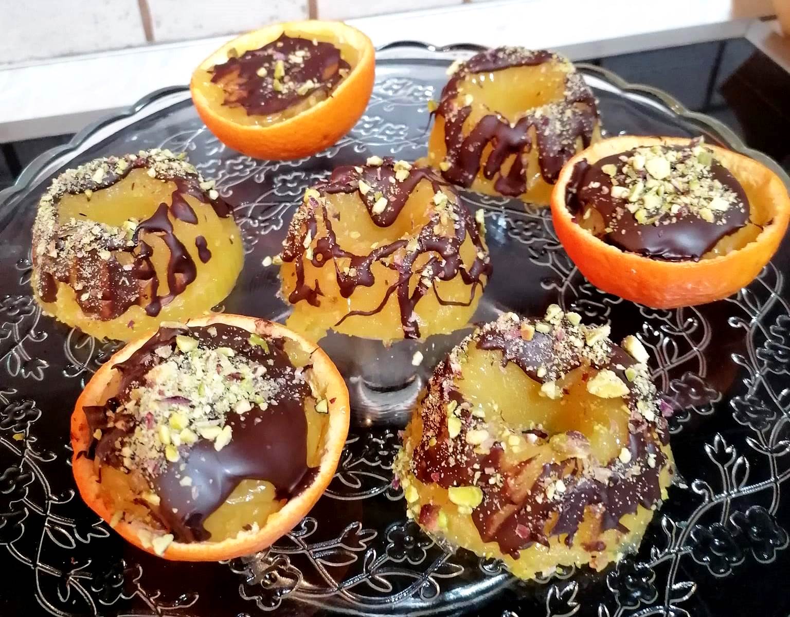 Ξεφορμάρουμε τα γλυκάκια, τα περιχύνουμε με λίγη λιωμένη κουβερτούρα και τους πασπαλίζουμε με λίγους ξηρούς καρπούς.