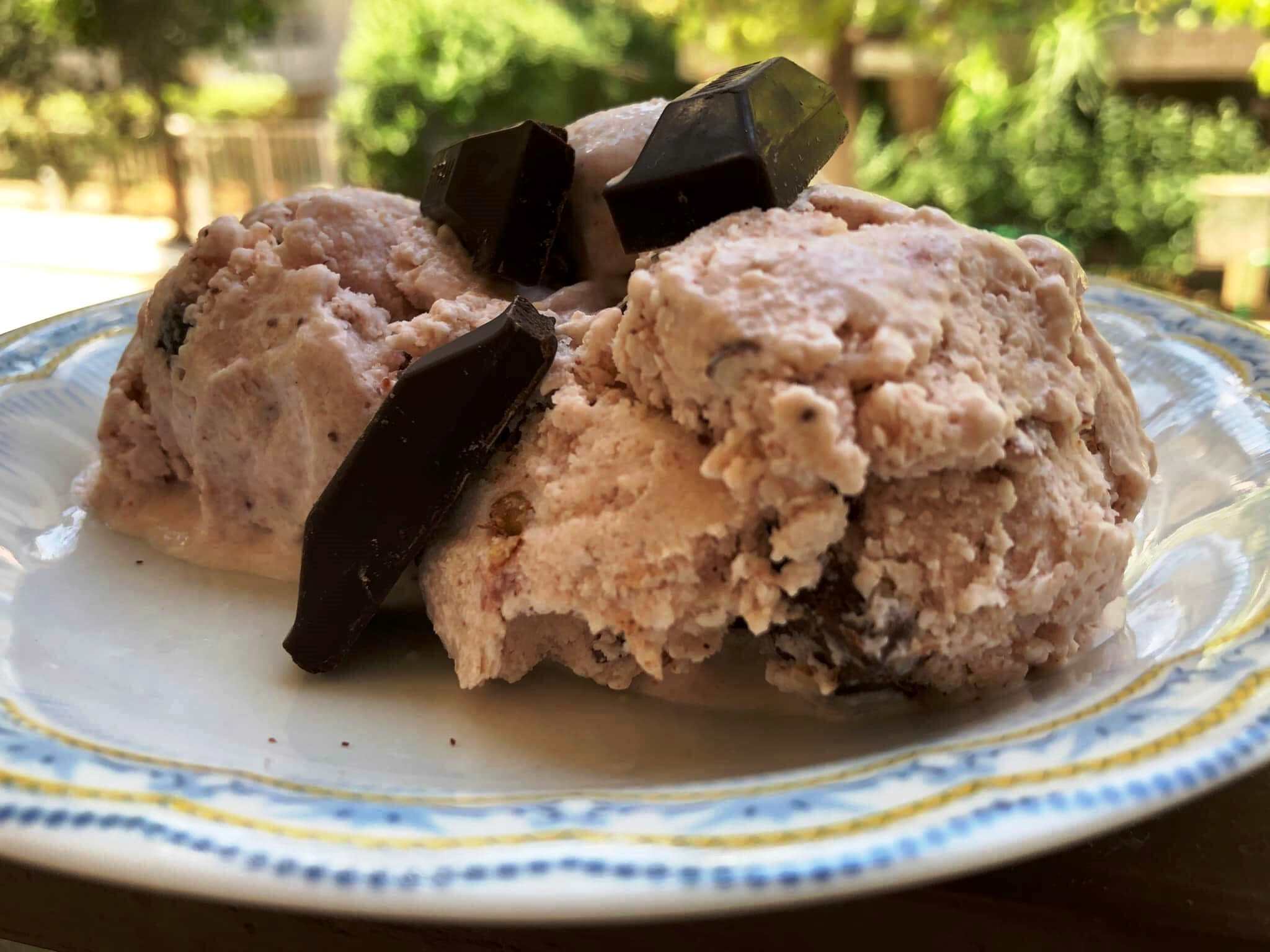 Ελαφρύ παγωτό χωρίς ζάχαρη, νόστιμη συνταγή με γιαούρτι, μαρμελάδα φράουλα, καπνιστά αμύγδαλα, μαύρη σοκολάτα