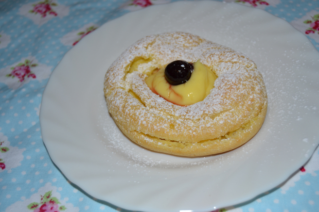 Όταν η κρέμα είναι κρύα θα μπορούσαμε να κόψουμε σουδάκια στη μέση και να τα γεμίσουμε με κρέμα και ένα μαύρο κεράσι ❤