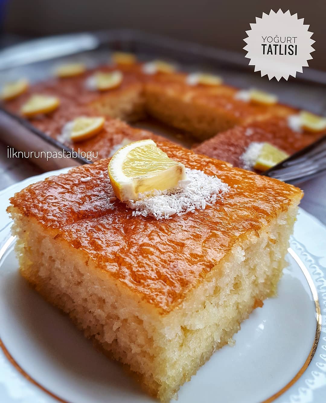 Κόβουμε σε τετράγωνα κομμάτια και στολίζουμε με λίγο ινδοκάρυδο και φετάκι λεμόνι!