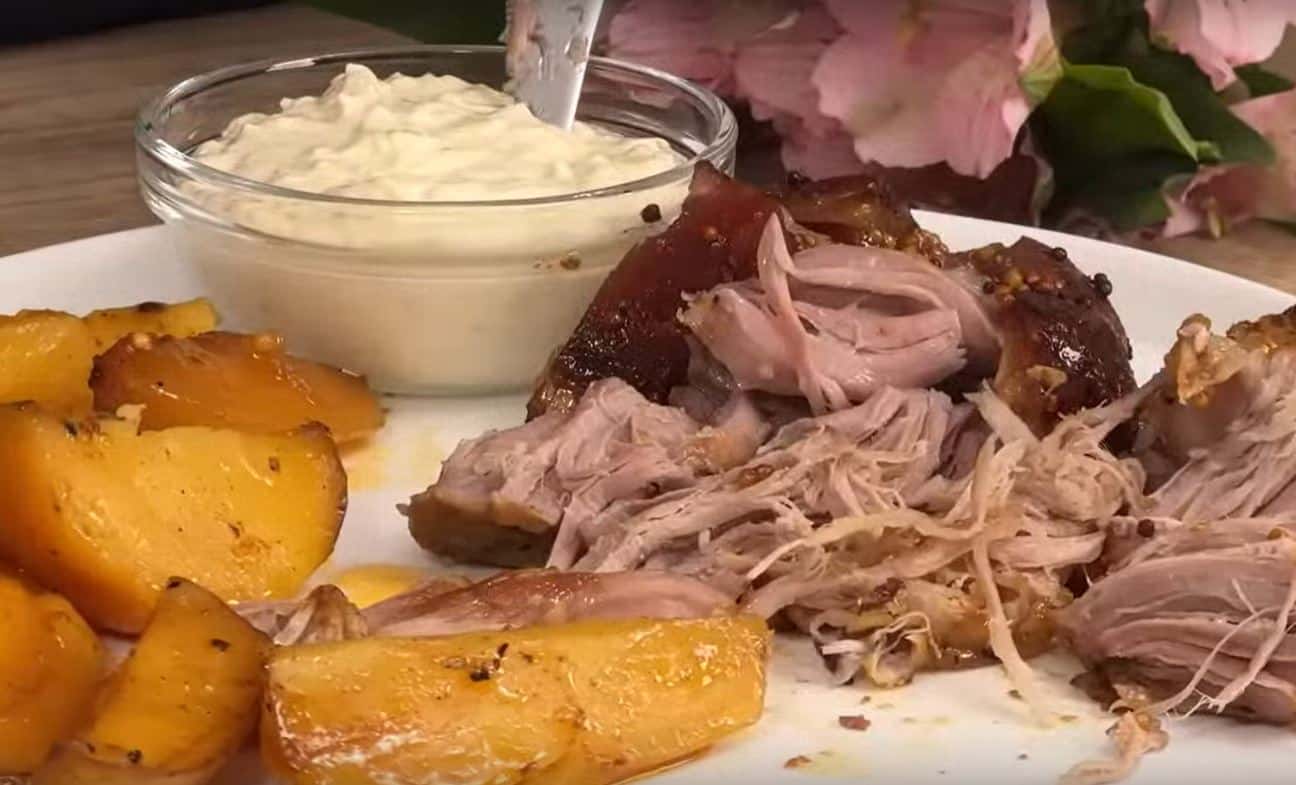Ψητό Χοιρινό Κότσι με Πατάτες και Σάλτσα