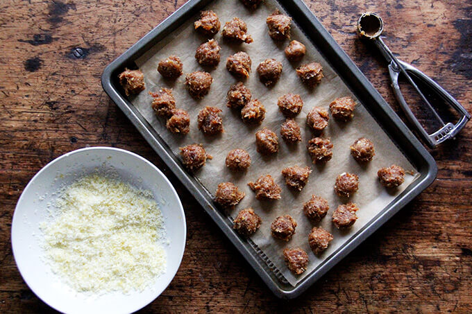 Φτιάξτε το μείγμα σε περίπου 25 έως 30 μικρές μπάλες