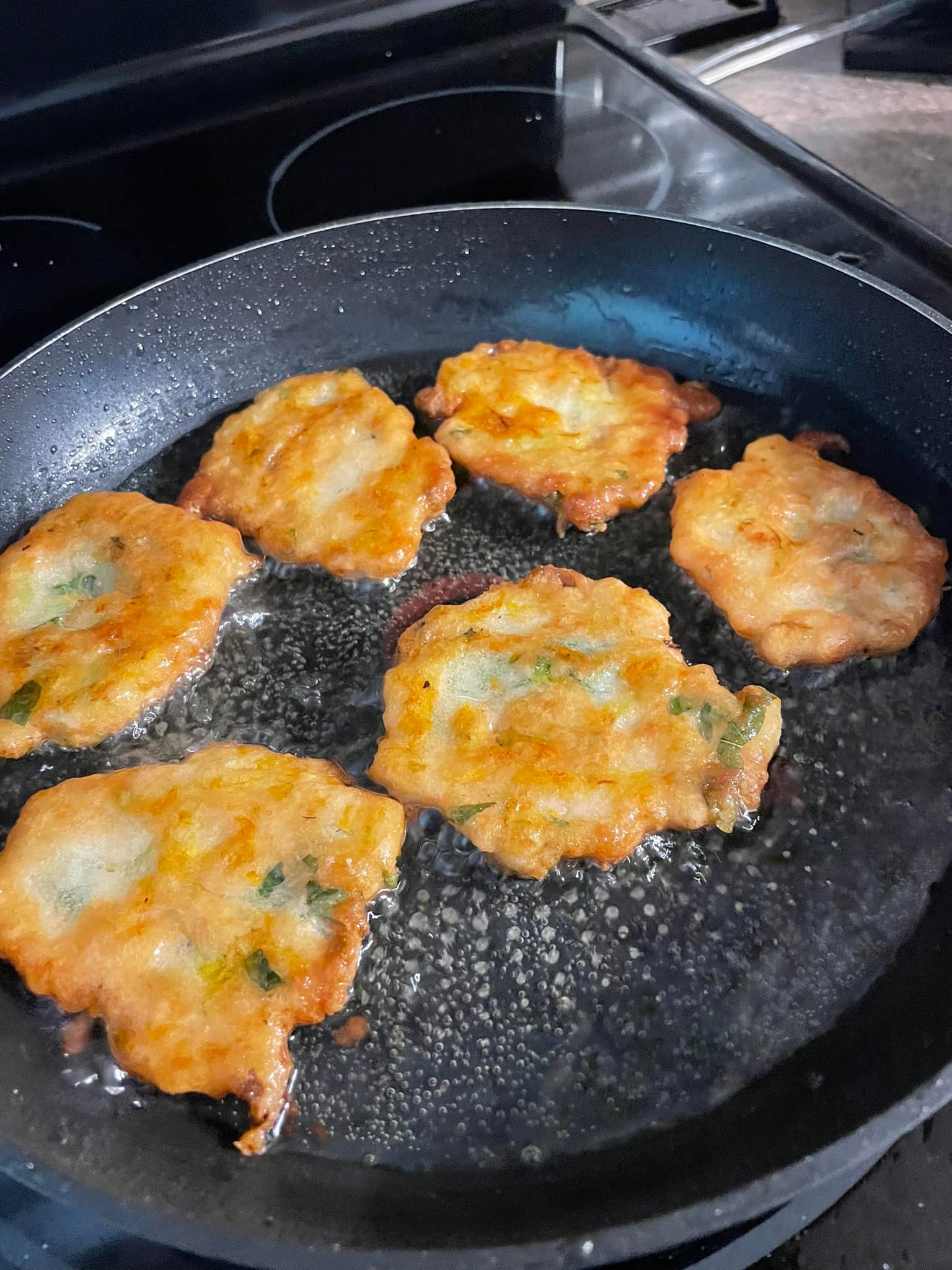 Ζεσταίνουμε το λάδι στο τηγάνι μέχρι να καψει καπως.