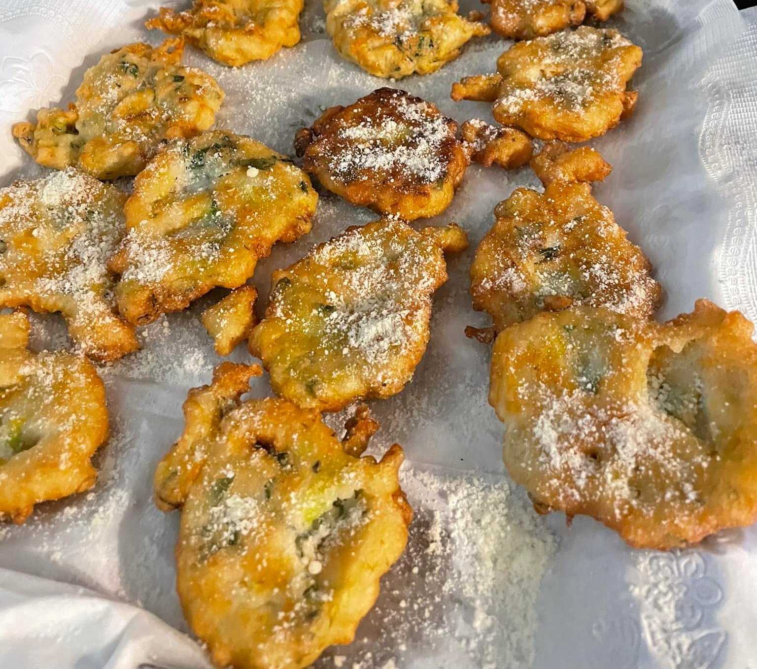Σε ένα μπολ προσθέτουμε τους ανθούς ψιλοκομμένους,Βασιλικός, Αλεύρι, αλάτι, τυρί, μπύρα ή νερό και ανακατεύουμε καλά αν το κουρκούτι είναι πηχτό προσθέτουμε λίγο ακόμα νερό.