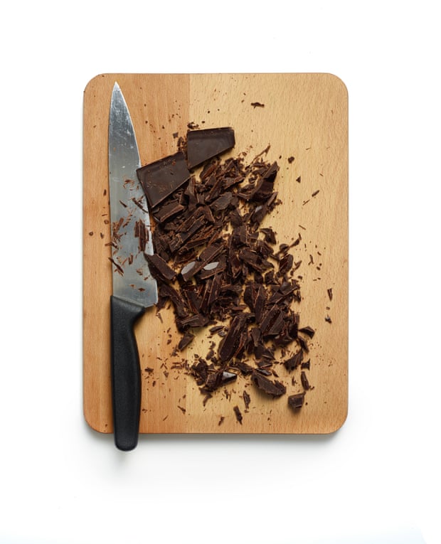 Ξεκινήστε να κόψετε τη σοκολάτα σε κομμάτια μεγέθους που θέλετε να βρείτε σε ένα μπισκότο.