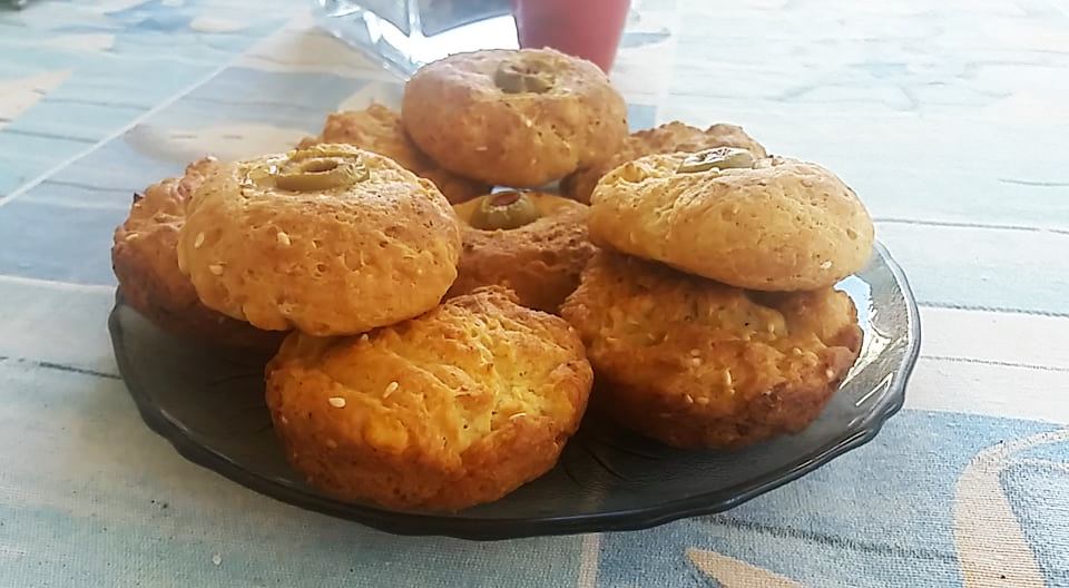 Το υπόλοιπο μείγμα το πλάθουμε μπαλάκια πιέζουμε με το δάχτυλο μας στο κέντρο και βάζουμε μισή ελίτσα. Πασπαλίζουμε με σουσάμι