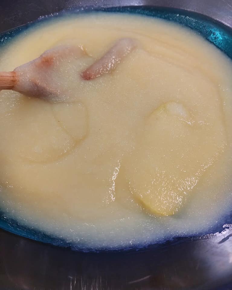 Σε μια κατσαρόλα βάζουμε το νερό, τη ζάχαρη, το ξύσμα και τις βανίλιες, το ξυλάκι κανέλας και ανακατεύουμε σε σιγανή φωτιά μέχρι να λιώσει η ζάχαρη και οι βανίλιες.
