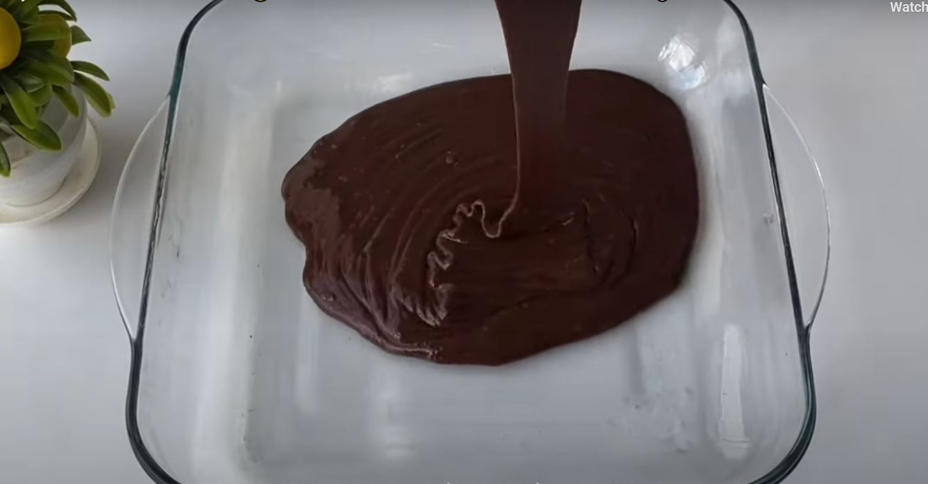 Ας ρίξουμε το μείγμα σε ένα τετράγωνο πυρέξ.