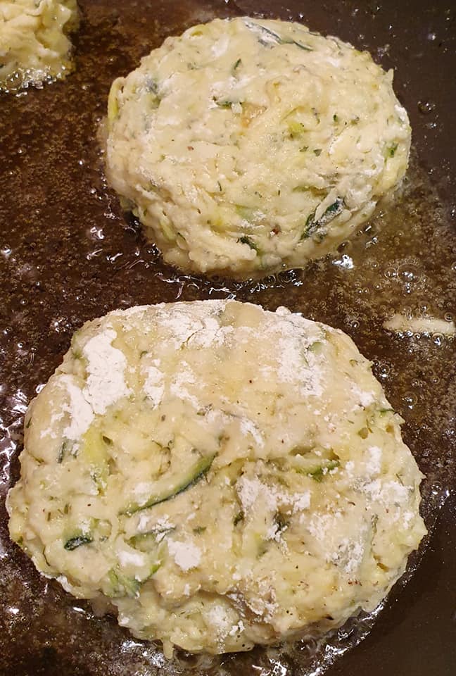 5. Τοποθετήστε ένα απλό αλεύρι σε ένα μπολ. Πάρτε μια χούφτα από το μείγμα και σχηματίστε ένα μπιφτέκι. Περάστε το από το αλεύρι και επαναλαμβάνουμε μέχρι να χρησιμοποιηθεί όλο το μείγμα.