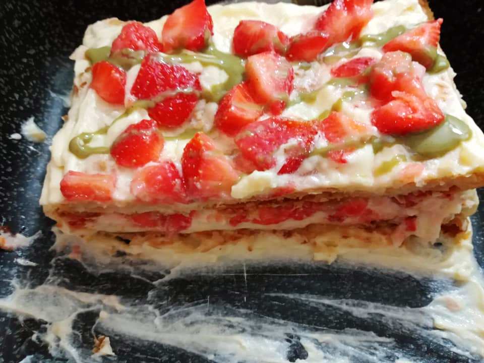 Σφολιάτα με κρέμα chantilly φρούτα, κρέμα φυστικιού και νουτέλα