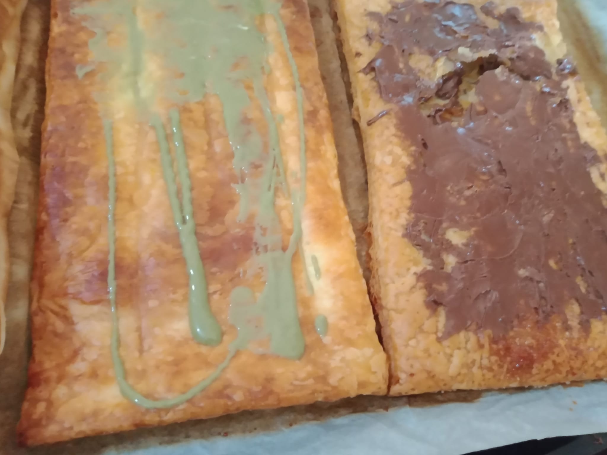 Αλλοίφουμε την μια σφολιάτα με νουτέλα και την άλλη με κρέμα φυστικιού