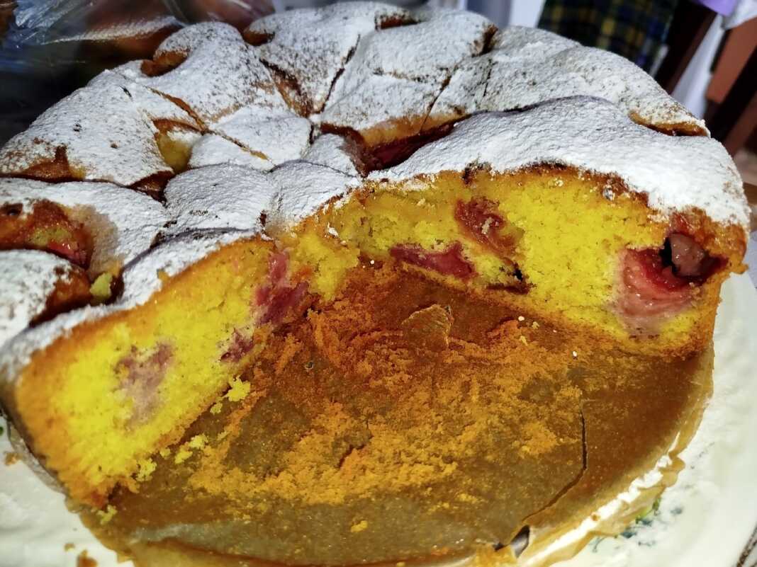Βάζω το ταψί στον προθερμασμένο φούρνο και ψήνω για περίπου 1 ώρα στους 170 βαθμούς. Για να δω αν είναι έτοιμη, τρυπάω το κέντρο με μια οδοντογλυφίδα. Αν βγει καθαρή, είναι έτοιμη.
