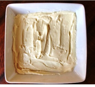 Απλώστε το μίγμα cheesecake στο κάτω μέρος ενός μικρού, ρηχού μπολ.