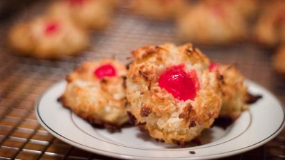 Τοποθετήστε τα κεράσια στο κέντρο του καθένα και ψήστε για περίπου 15 λεπτά, ή μέχρι να γίνουν ωραία και χρυσά από πάνω.