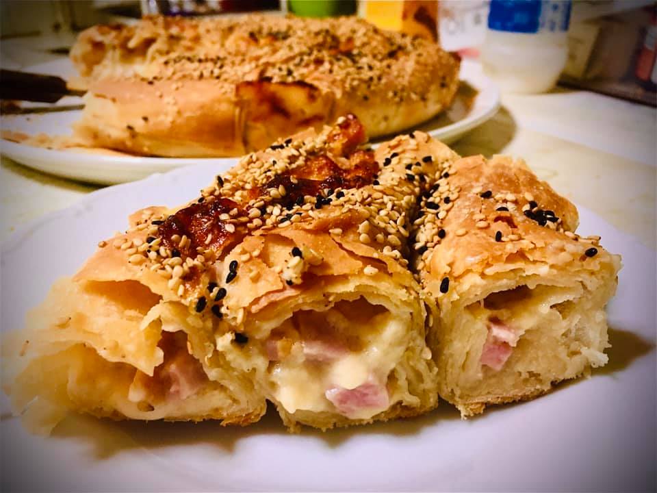 Ζαμπονοκασερόπιτα στριφτή με σπιτικό φύλλο και μπόλικο σουσάμι