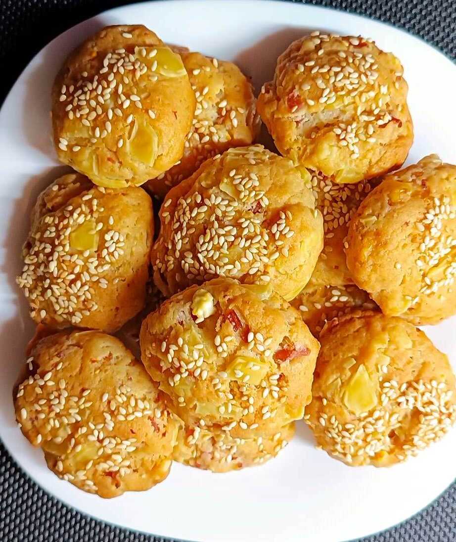 Ζυμωνουμε τα υλικα όλα μαζί και κάνουμε μπαλάκια την ζύμη αυτή στο μέγεθος ενός αυγού.