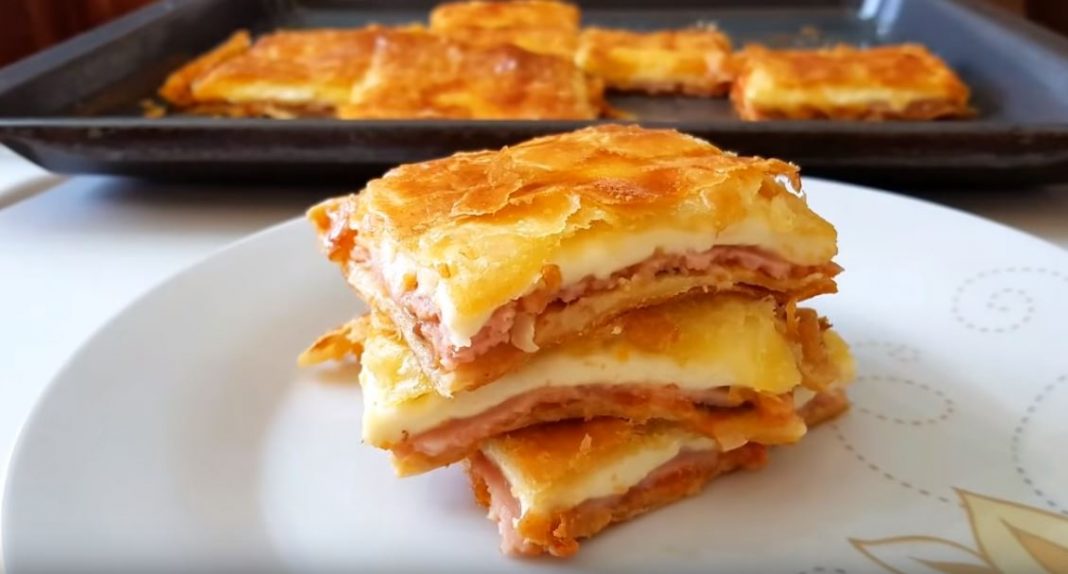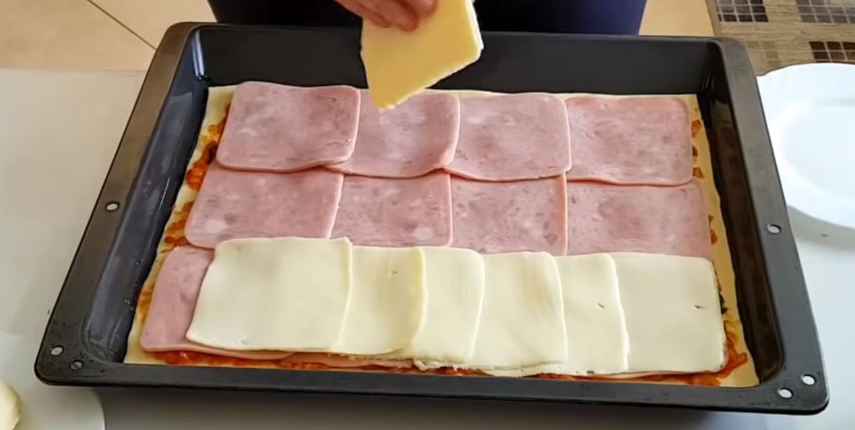 Από πάνω βάζουμε το ζαμπόν και καλύπτουμε την σάλτσα. Συνεχίζουμε και πάνω από το ζαμπόν βάζουμε το τυρί.