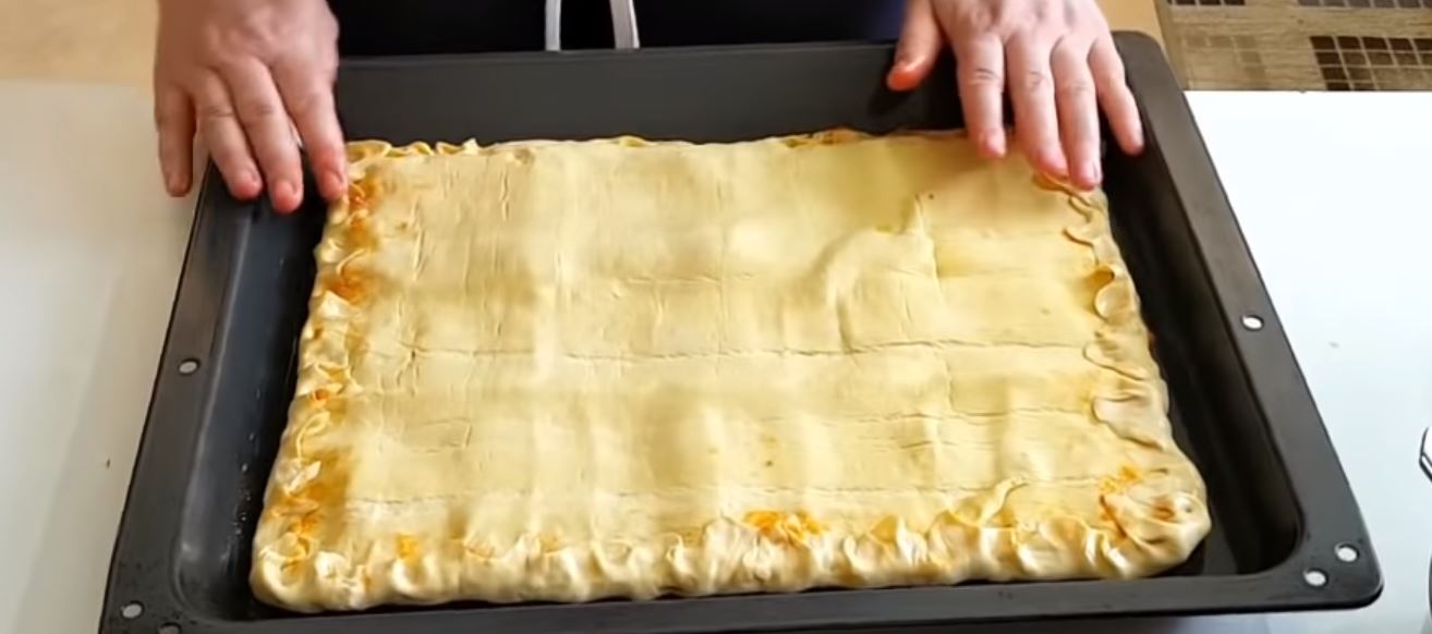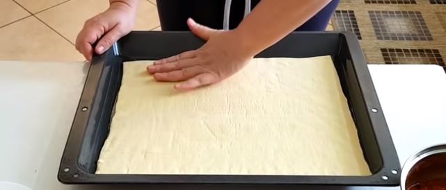 Παίρνουμε μια λαμαρίνα την οποία την έχουμε λαδώσει και στρώνουμε το ένα φύλο, το ανοίγουμε καλά και το πατάμε να φτάσει στα τοιχώματα της λαμαρίνας.