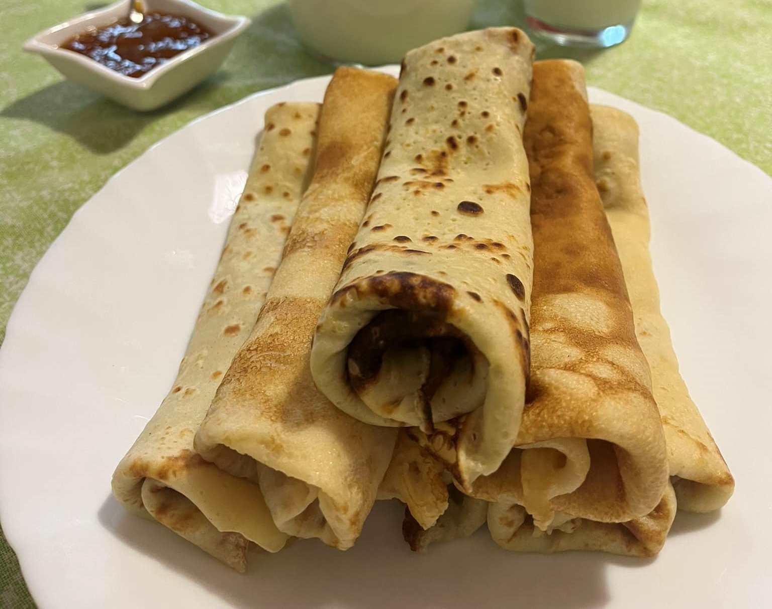 Σερβίρουμε τις ζεστές κρέπες με τη γέμιση της επιλογής μας.