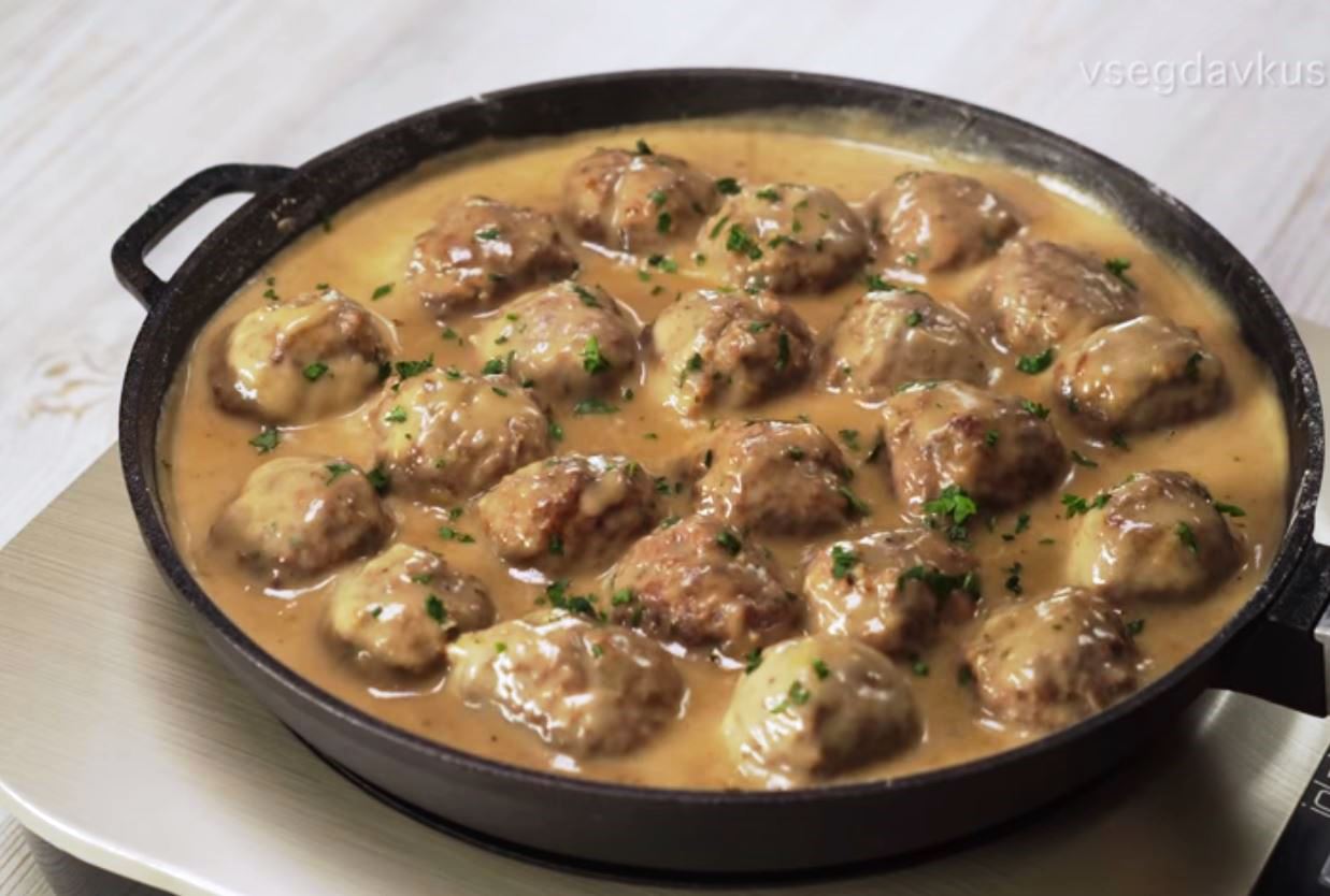 Προσθέστε τα κεφτεδάκια στο τηγάνι και σιγοβράστε στη σάλτσα για 3 λεπτά σε χαμηλή φωτιά, πασπαλίστε με ψιλοκομμένο μαϊντανό από πάνω.