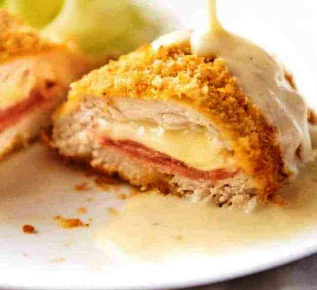 Ζουμερό στήθος κοτόπουλου γεμιστό με ζαμπόν και τυρί στο φούρνο. Πανέμορφα χρυσό παντού και πραγματικά τραγανό, σαν να είναι τηγανητό!! Μπορείτε σίγουρα να το κάνετε απόψε!!