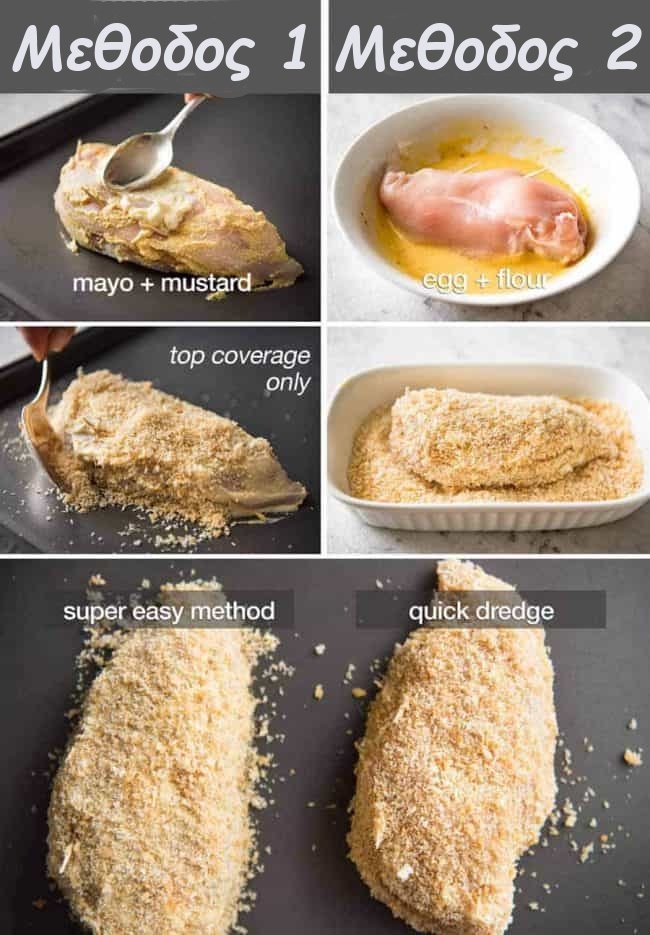 Στη συνέχεια πανάρετε το κοτόπουλο. Σας δίνω δυο μεθόδους για το πανάρισμα του κοτόπουλου.