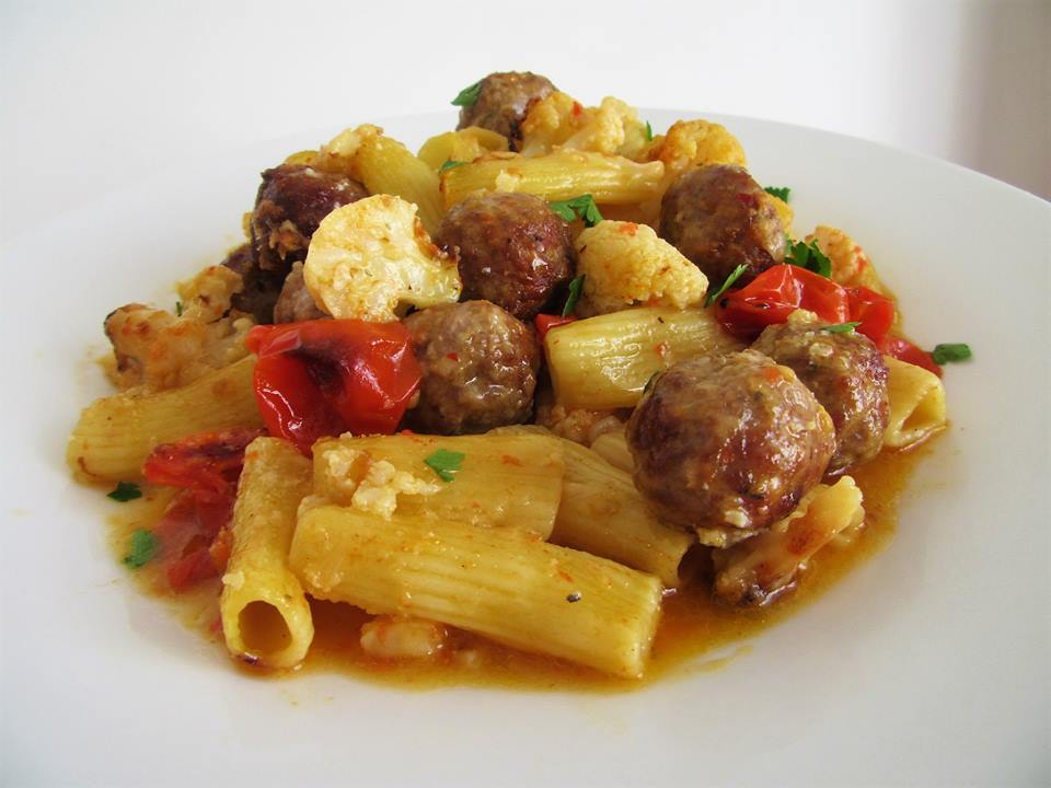 Ζυμαρικά με κεφτεδάκια στο φούρνο