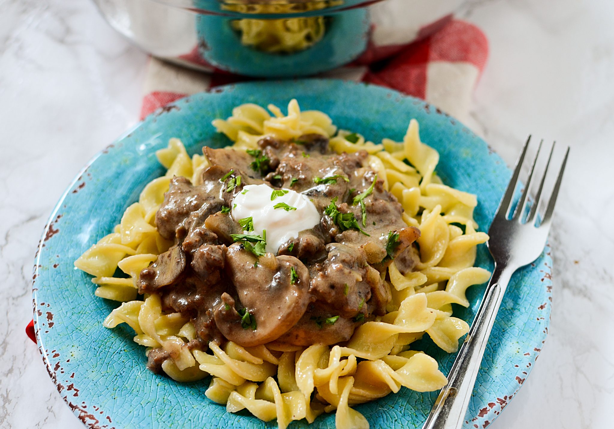Αφαιρέστε από τη φωτιά και αφήστε το να κρυώσει για 5 λεπτά πριν ανακατέψετε την ξινή κρέμα ή γιαούρτι